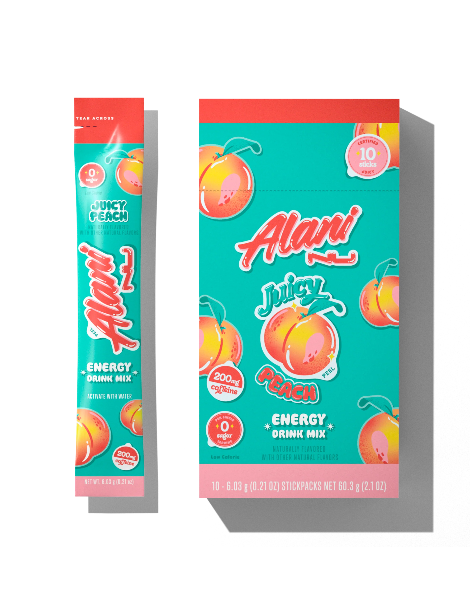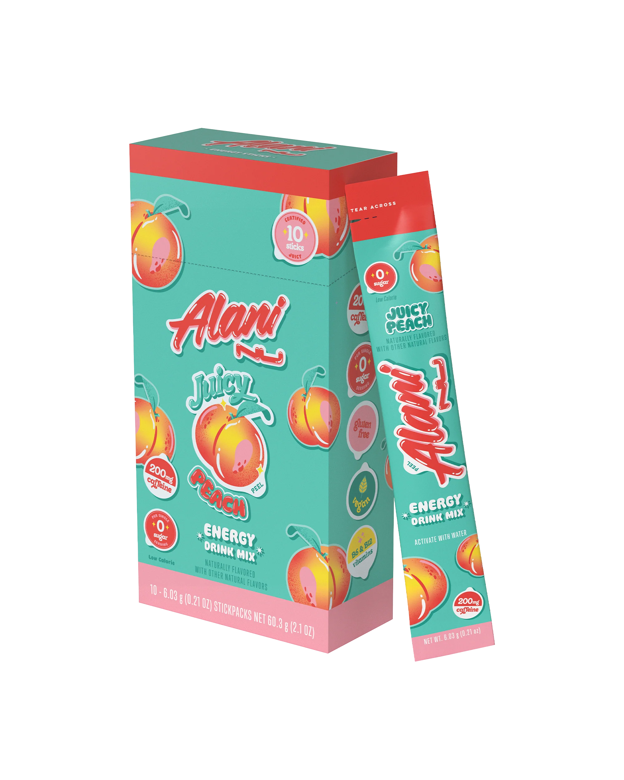 With 200mg caffeine, B vitamins, 0 sugar and a deliciously juicy flavor, Juicy Peach Energy Sticks provide all the perks of your fav Energy on-the-go. Mix with water whenever you need a refreshing sip of good energy bursting with bold fruit flavor.
